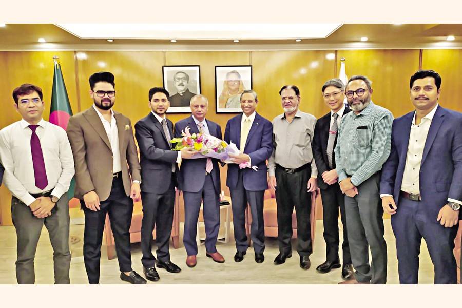 President of Bangladesh Motorcycle Assemblers & Manufecturers Association (BMAMA) and Chairman & Managing Director of Uttara Motors Ltd. Matiur Rahman along with other BMAMA members Biplob Kumar Roy, CEO, TVS Auto Bangladesh Ltd, Shigeru Matsuzaki, MD & CEO, Bangladesh Honda Private Ltd, Mohiuddin Ahmed, MD, Rupsha Trading Corp, Kawsar Ahmed, Director Rupsha Trading, Shamsul Bashar, Director, Rasel Industries and Mohammad Saiful Islam, GM, ACI Motors Ltd. paid a courtesy call on newly elected FBCCI President Mahbubul Alam. They discussed various issues related to business. The BMAMA President, on behalf of the association, thanked the newly elected FBCCI President and hoped that under his strong leadership, the country's top business organisation would become more vibrant and create a conducive environment for businessmen.