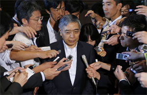 "I told the prime minister we will steadily continue with qualitative and quantitative easing launched in April last year to achieve our 2.0 per cent price goal," Kuroda told reporters after Wednesday's meeting with Abe.