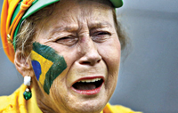 RIO DE JANEIRO (AP) :Tears smudged the faces of children painted in Brazil canary and green colours. Brazil coach Felipe Scolari buried his face in his hands. Fans at watch parties across the country wailed in anguish.