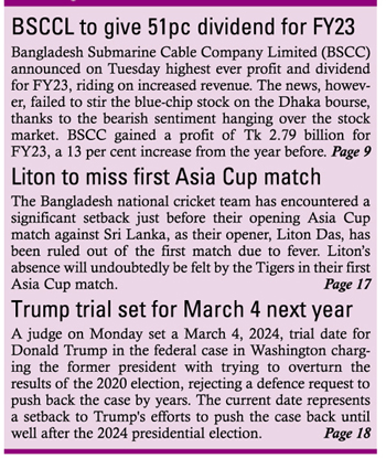 Wednesday, 30 August 2023