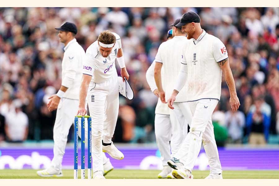 Broad had previously flipped the bails on day two of the Test on Friday before Mark Wood dismissed Marnus Labuschagne with the next ball. England bowled out Australia for 334 to win the fifth Test by 49 runs and draw the series. With England needing two wickets to win the Test on Monday, Broad was again spotted flipping the bails.
