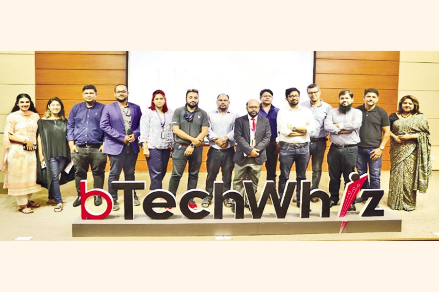 CSE graduates and individuals with relevant skills posing for photograph at a programme titled 'bTech Whiz' organised by Career and Placement Centre of North South University recently. bKash Limited conducted the programme. M Mozammel Haque, EVP and Head of Department, Software Research and Engineering of bKash, and Dr Mohammad Khasro Miah, director of CPC of NSU, among others, were present.