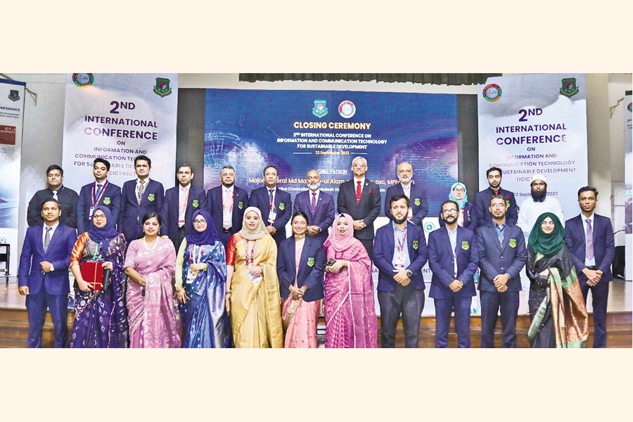 Bangladesh University of Professionals (BUP) Vice Chancellor Major General Md Mahbub-ul Alam and participants at a closing ceremony of the three-day 2nd international conference on 'Information and Communication Technology for Sustainable Development' (ICICT4SD) on the university campus in the city on Sunday