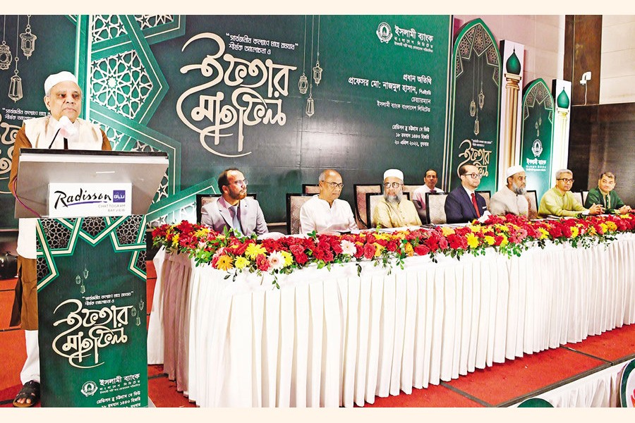 Chattogram North Zone, South Zone, Agrabad and Khatunganj corporate branches of Islami Bank Bangladesh Limited organised an iftar mahfil at a hotel in Chattogram on Wednesday, with Prof Md Nazmul Hassan, Chairman of the bank, as the chief guest. Mohammed Monirul Moula, Managing Director & CEO, presided over the event.