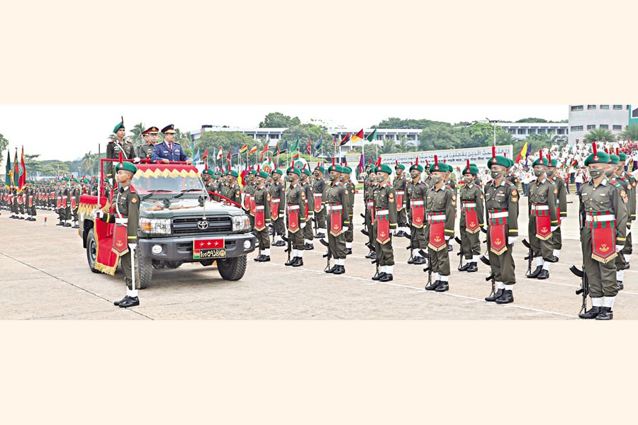 Chief of Staff of the Qatar Armed Forces Lieutenant General (Pilot) Salem Hamad Al-Akil Al-Nabet reviewing President Parade at the Bangladesh Military Academy parade ground in Bhatiary of Chattogram on Wednesday, marking the commissioning of the officer cadets of the 82nd Long Course — ISPR