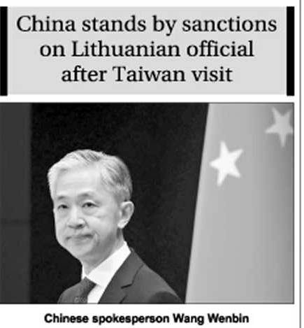 Chinese foreign ministry spokesperson Wang Wenbin spoke after Lithuania demanded China remove sanctions imposed on Lithuanian Deputy Transport and Communications Minister Agne Vaiciukeviciute for visiting Taiwan.