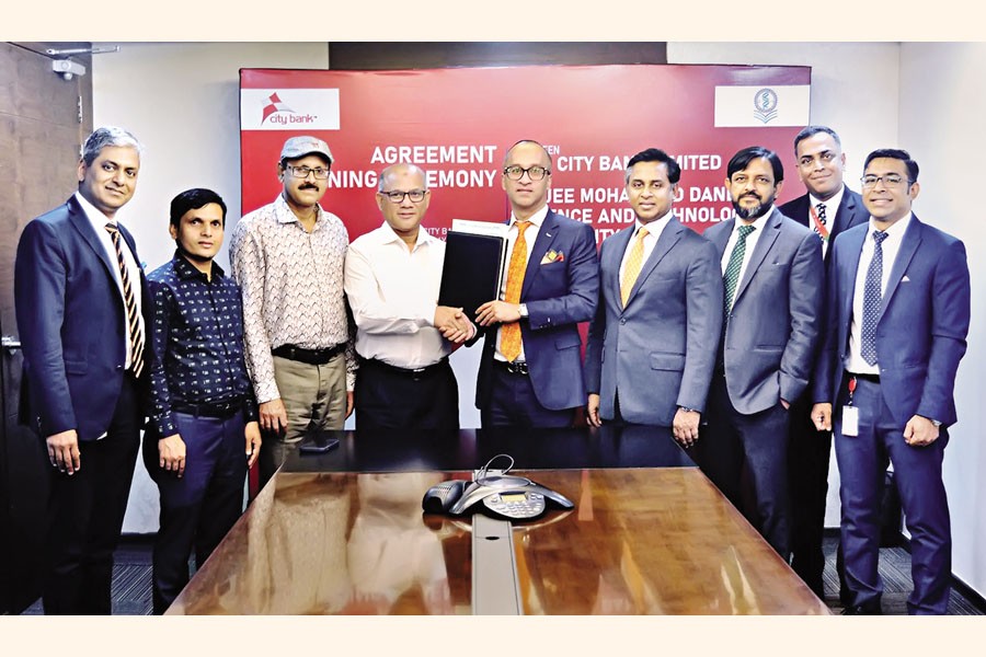 City Bank recently signed an agreement with Hajee Mohammad Danesh Science and Technology University (HSTU). Under this agreement, the bank will provide a sizeable fund to HSTU to its Plant and Animal Disease Diagnostic Unit as part of its corporate social responsibility (CSR). Mashrur Arefin, Managing Director & CEO of the bank, and Prof Dr M Kamruzzaman, Vice-Chancellor of the university, signed the agreement.