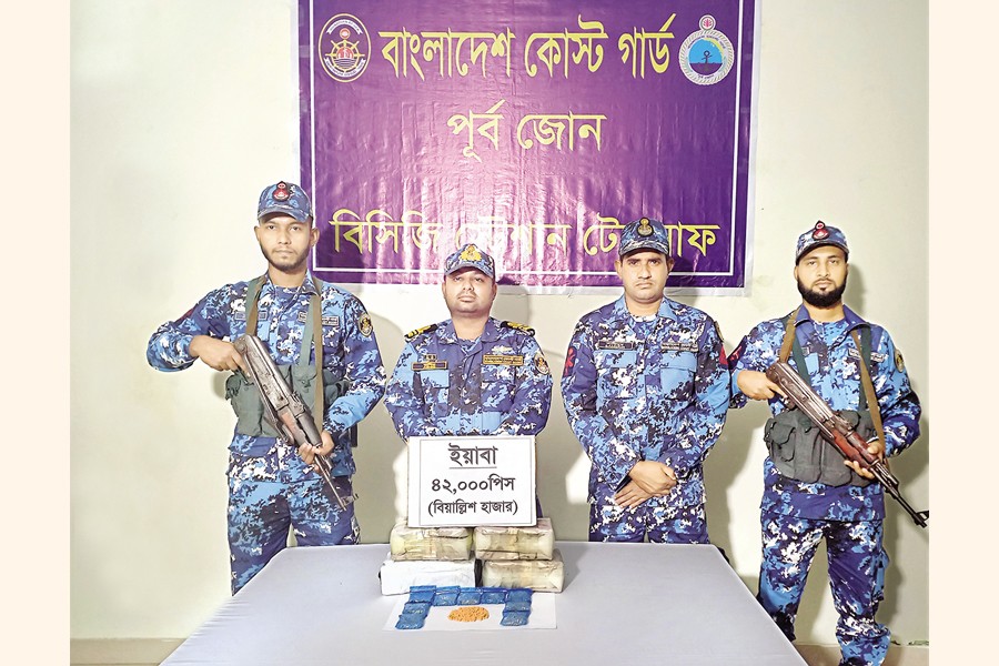 Members of Bangladesh Coast Guard in a drive arrested a man with 42,000 pieces of Yaba near Shahpori Island in Teknaf upazila, Cox's Bazar, on Monday