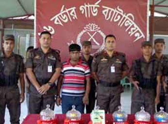 Border Guard Bangladesh (BGB) personnel arrested a young man and recovered from him cobra venom worth Tk 1,000 million at Benapole under Sarsa Upazila in Jessore on Friday night. BGB also seized a private car from the possession of the arrestee, identified as Mohammad Milon Kazi, 28, son of Akbar Kazi of Kathmari village under Benapole union. Being tipped off, a team of BGB-26 Battalion intercepted a Jessore-bound private car around 10.00pm and recovered 12 pounds and two ounces of the snake venom, kept in seven jars, from the backside of the vehicle, said commanding officer of BGB-26 Lieutenant Colonel Mohammad Jahangir Hossain. He said, the present market value of the seized cobra venom is worth Tk 1,000 million (Tk 100 crore). A case was filed, according to UNB.