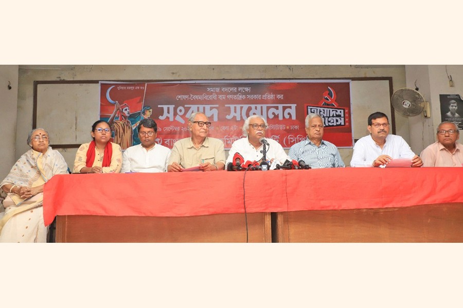 Communist Party of Bangladesh (CPB) General Secretary Ruhin Hossain Prince speaking at a press conference in the capital on Wednesday. — Focus Bangla