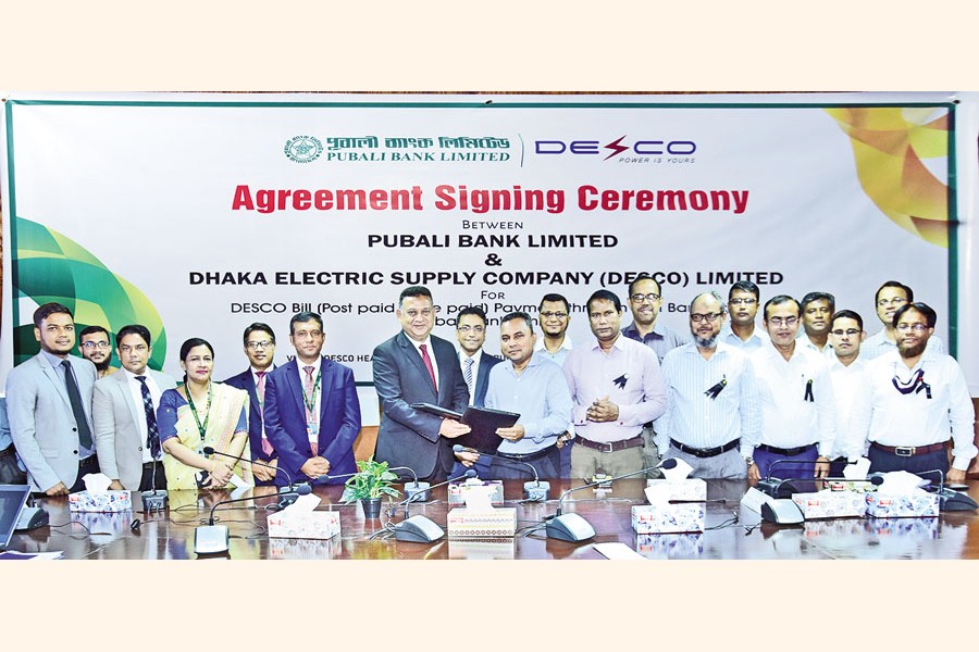 Pubali Bank Limited and Dhaka Electric Supply Company (DESCO) Limited recently signed an agreement for DESCO Bill (Prepaid & Postpaid) payment through internet banking/PI banking apps, said a press release.