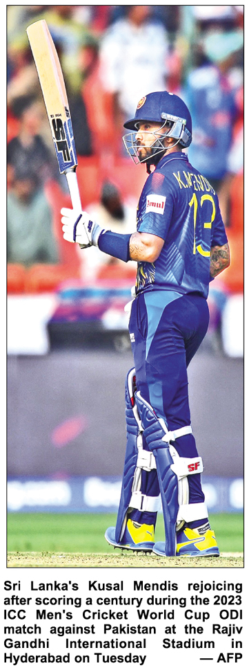 In another match, Kusal Mendis hit the fastest century by a Sri Lanka batter in men's ODI World Cup on Tuesday against Pakistan at Rajiv Gandhi International Stadium in Hyderabad, report agencies.