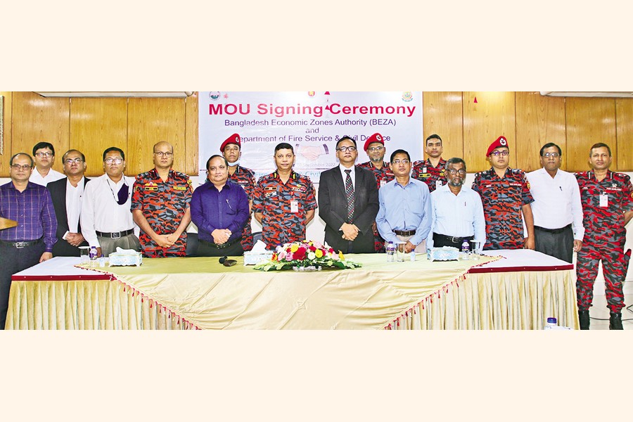Bangladesh Economic Zones Authority (BEZA) on Thursday signed a memorandum of understanding (MoU) with the Bangladesh Fire Service and Civil Defence (BFSCD) to reduce the risk of fire accidents in the economic zones.
