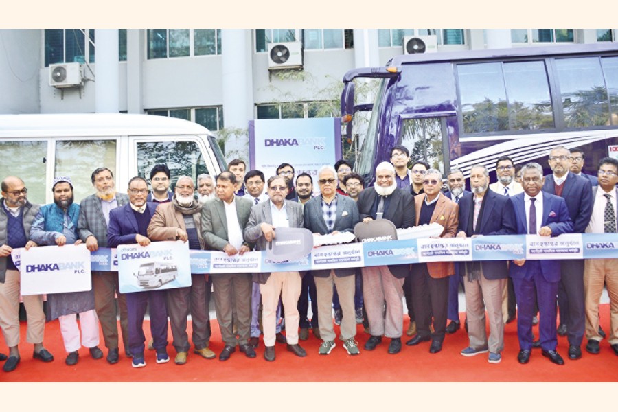 Dhaka Bank, under its corporate social responsibility, presented a bus and a coaster bus to Shaheed Ziaur Rahman Medical College Hospital, Bogura. Abdul Hai Sarker, chairman, formally handed over the keys to Professor Dr. Md. Wadudul Hoque Tarafder, principal of the medical college hospital, on January 13. Dhaka Bank's ATM Hayatuzzaman Khan, founder vice chairman; Altaf Hossain Sarker, former director, and AKM Shahnawaj, additional managing director, were also present on the occasion. The vehicles will facilitate the transportation needs of students, doctors, faculty members and staff of the medical college.