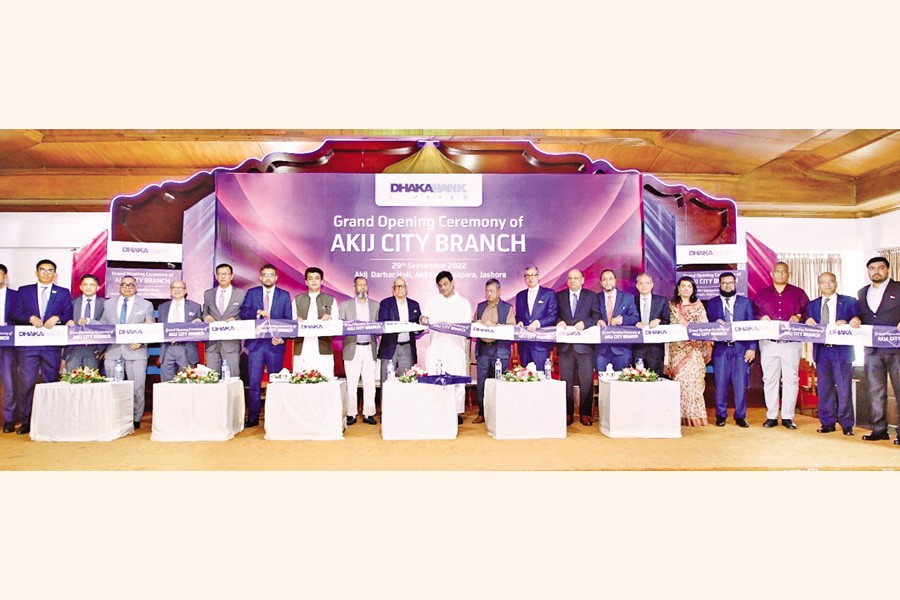 Dhaka Bank Limited has recently opened its 110th branch namely 'Akij City Branch' at Noapara in Jashore. Chairman of Akij Group Sheikh Nasir Uddin inaugurated the branch as the chief guest in presence of Chairman of Dhaka Bank Abdul Hai Sarkar. Founder Vice Chairman of Dhaka Bank ATM Hayatuzzaman Khan, Director Altaf Hossain Sarkar, and Managing Director and CEO Emranul Huq were also present. After the ceremony, a payroll agreement was signed between Dhaka Bank and Akij Jute Mills Limited.