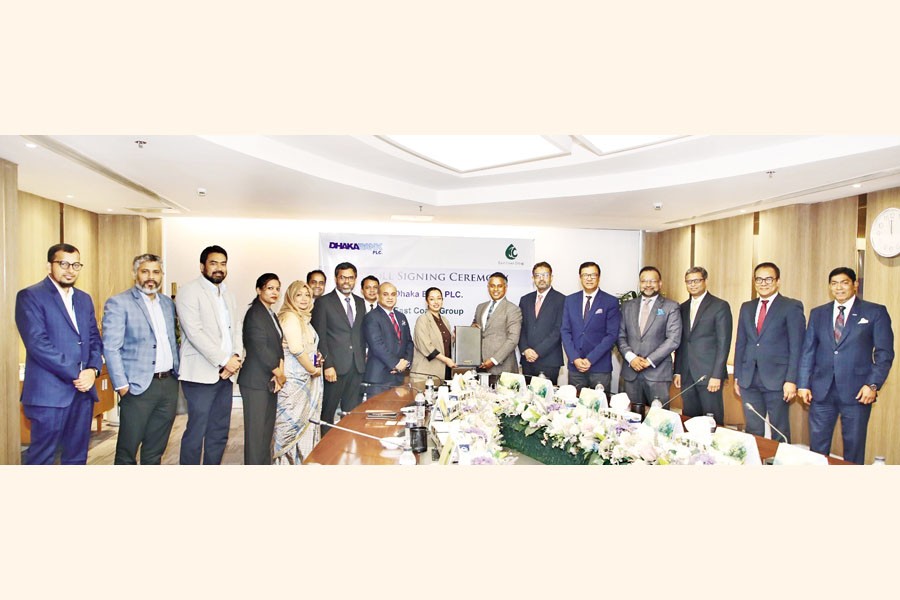 Dhaka Bank PLC signed a payroll banking agreement with East Coast Group at the bank's head office in Dhaka on Tuesday. Sheikh Mohammad Maroof, Managing Director & CEO of Dhaka Bank, and Dilruba Chowdhury, Director, HR of East Coast Group, exchanged the agreement at the signing ceremony. Under this agreement, all the employees of East Coast Group are entitled to access Dhaka Bank's various banking products & services on preferential terms.