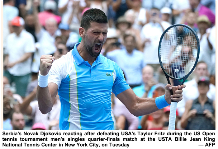 NEW YORK, Sept 06 (AFP): Novak Djokovic charged into a record 47th Grand Slam semi-final on a steamy Tuesday at the US Open with a straight-sets win over Taylor Fritz, while home favourite Coco Gauff stayed on track for her first major title.