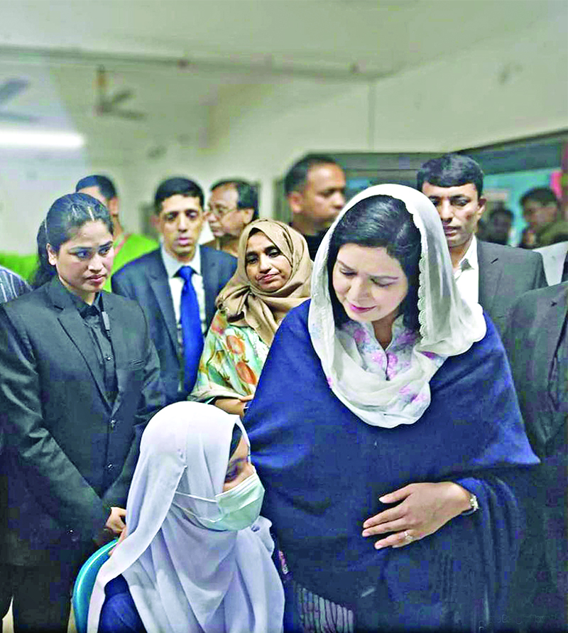 Dr. Zubaida Rahman distributing books among the children at Korail slum in the capital on Saturday. Ziaur Rahman