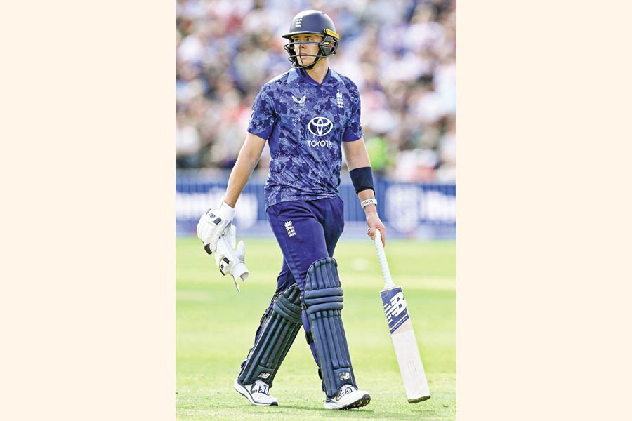 England's Jamie Smith walks back to the pavilion having lost his wicket for 54 during the first One Day International (ODI) cricket match between England and South Africa at Headingley, in Leeds, on Tuesday. — AFP