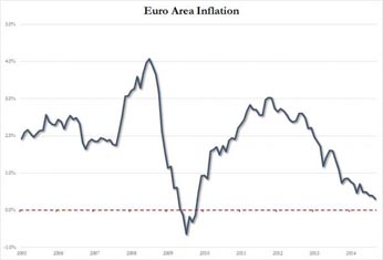 The annual rate of inflation in the eurozone fell further below the European Central Bank's target in September, and to its lowest level since October 2009. The decline is a setback to the ECB which, earlier this month, launched a series of measures designed to boost growth and start to move the inflation rate back toward its goal of just below 2.0%. It is too soon for those measures to have had an impact, but the further drop in the rate at which consumer prices are increasing underlines the severity of the threat confronting policy makers. The European Union's statistics agency said consumer prices were just 0.3% higher than in September 2013, as the inflation rate slowed from 0.4% in August. The inflation rate has now been below 1.0% for 12 straight months, according to wsj.com