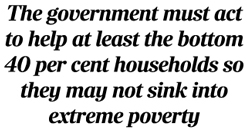 But for those living through penury, the matter is urgent and cannot wait. The government must act to help at least the bottom 40 per cent households so they may not sink into extreme poverty.