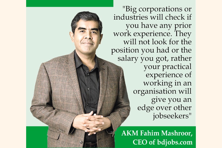 He added, "Another notable thing here is that graduates often sit idle when they fail to land their dream job. This is something that needs to be overturned. Even if a job's salary and benefits offerings are much lower than your expectations, you should still start working because it will add value to your resume. Big corporations or industries will check if you have any prior work experience. They will not look for the position you had or the salary you got, rather your practical experience of working in an organisation will give you an edge over other jobseekers, which most of the recent graduates fail to comprehend."