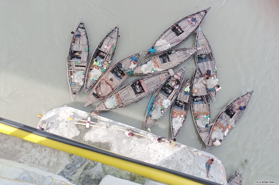 Fishermen sitting idle after throwing fishing nets in the Kocha River in Kawkhali upazila of Pirojpur district. The photo was taken on Saturday — Focus Bangla