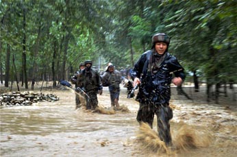 Authorities say the worst flooding in 22 years has killed at least 14 people in the Indian-controlled portion of Kashmir. Police officer Imtiyaz Hussain says the victims were swept away by floodwaters or buried by mud from mountain slopes since Wednesday. They included a paramilitary officer whose bunker collapsed on him. Hussain said Thursday that soldiers and rescue workers used boats to move thousands of people to higher ground. At least 100 villages across the Kashmir valley were flooded by overflowing lakes and rivers, including the Jhelum River, which was up to 1.5 meters (4 feet) above its danger level. Landslides are common in India during the monsoon season, which runs from June through September, according to AP.