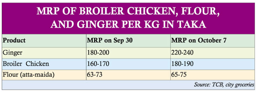 Flour, chicken, ginger prices up