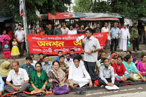 Representatives from about 30 readymade garment (RMG) workers' organisations also joined the demonstration to express their solidarity with the demands.