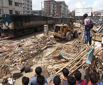 A fresh drive to clear encroachment on railway tracks in and around Dhaka city has started again, about 12 hours after BNP-enforced hartal. Illegal structures were being brought down by bulldozers and cleared in the city's Cantonment area on Tuesday morning. The drive that started last week had to be called off momentarily due to the successive strikes called by Jamaat-e-Islami and the BNP-led 20-party alliance. The drive resumed at 10:00am today from the east side of Dhaka Cantonment. The tracks leading to Hazrat Shahjalal (RA) International Airport from the Cantonment will be cleared of all encroachments, Railway’s Dhaka Divisional Estate Officer Nurunnabi Kabir said. Four people died at a fish market on Karwanbazar railway tracks after they were caught between two passing trains. That tragedy prompted railway authorities to start the eviction drive. Nurunnabi said evictions will also take place tomorrow and the day after, according to a news agency.