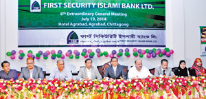First Security Islami Bank Limited will issue 1R:2 i.e. 1 right share for every 2 ordinary shares of Tk 10 (Ten) each to raise paid-up capital of the Bank subject to the approval of the regulatory bodies. The 8th Extraordinary General Meeting of the bank held Saturday at Hotel Agrabad, Chittagong approved the proposal. The meeting was presided over by Alhaj Mohammed Abdul Maleque, Vice Chairman, Board of Directors of First Security Islami Bank Limited. Among others, A. A. M Zakaria, Managing Director, Mr. S. M. Nazrul Islam, Company Secretary and shareholders of the Bank were also present on the occasion, said a statement.
