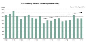The World Gold Council is confident that 2014 would end on a robust note in gold demand in India, contrary to the initial drop in the first half. ‘This year's first-half has been a little challenging. The jewellery demand in terms of volume from January to June (first six months of 2014) as compared to the same period last year is lowered by 14 per cent. But this is a short-term trend,’ World Gold Council Director-Jewellery for India Vipin Sharma told PTI in an exclusive interview. He said that the wedding season in India constituted one of the biggest segments as 50 per cent of the total gold consumption occurred during that period. According to Sharma, who is responsible for the strategic development of the World Gold Council's Jewellery division in India, short-term fluctuations were a common trend and depend on the economic reasons as well as on the sentiments of the consumers, according to ndtv.com.