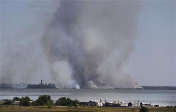 A town in east Ukraine came under shellfire by pro-Russian rebels on Wednesday, amid fears that they are launching a counter-offensive on government-held parts of the region. In response to outgoing fire early Wednesday, rebel forces lobbed at least 10 shells at the government-held town of Novoazovsk. Plumes of black smoke rose above the town, which was hit repeatedly shelled Tuesday, injuring four residents in a local hospital, according to the town's mayor, Oleg Sidorkin. The renewed fighting came a day after the Russian and Ukrainian leaders met in Minsk, Belarus, to discuss the escalating crisis in east Ukraine. Despite a one-on-one session between Vladimir Putin and Petro Poroshenko that lasted over two hours, there was no indication of a swift resolution to the fighting that has dragged on since April and claimed at least 2,000 civilian lives. After the talks, Ukraine's president said Putin had accepted the principles of a peace plan for the region. The Russian leader, however, insisted that only Kiev could secure a cease-fire deal with the pro-Moscow separatists. ‘This is not our business,’ Putin said of any cease-fire plan. ‘This is Ukraine's business.’ According to AP.