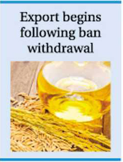 In a bid to check the uptrend in the edible oil prices, the commerce ministry imposed a ban on export of rice bran oil but the ban was withdrawn later for low demand of the oil in the domestic market.