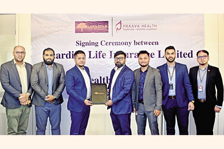 Guardian Life Insurance Limited signed an agreement recently with Praava Health, a healthcare brand in Bangladesh which integrates digital health and in-clinic experience for its customers. Yeasin Arafat, head of Digital Channel & ADC of Guardian Life Insurance Limited, and Shafaat Ali Choyon, head of Marketing and Corporate Sales of Praava Health, signed the agreement. This partnership will facilitate customers to avail Guardian Life's insurance policies through Praava Health's digital and B2B distribution channels
