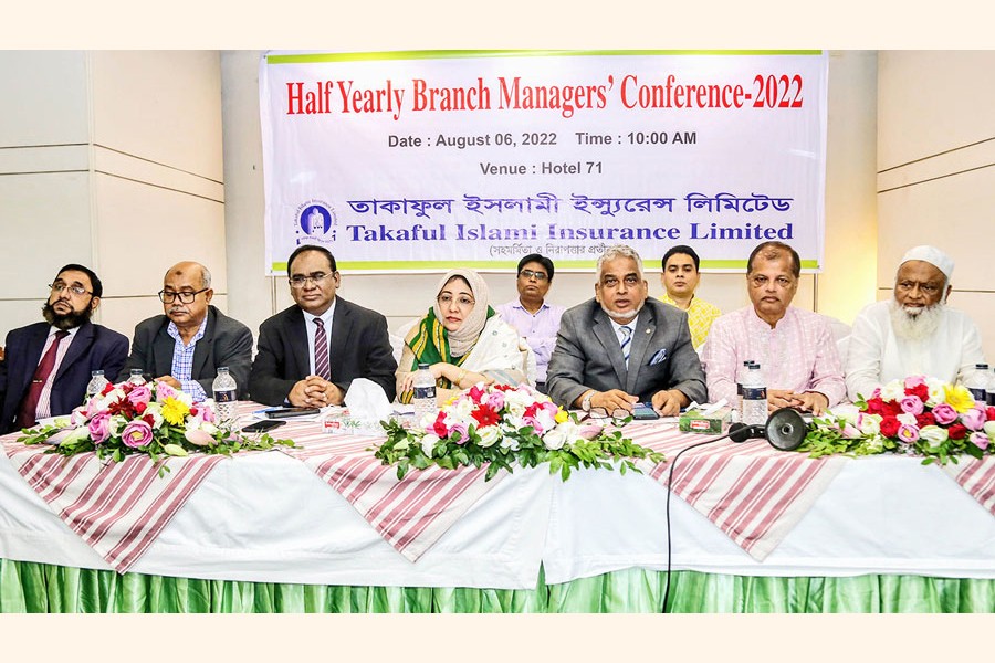 The Half Yearly Branch Managers' Conference-2022 of Takaful Islami Insurance Ltd was held at a city hotel recently. Qazi Mukarram Dastagir, Chief Executive Officer of the company, presided over the conference which was attended by Tahmina Afroz, Chairman of the company, as the chief guest. The conference was conducted by Abul Kalam Azad, Addl. Managing Director, and Md Shaheen Miah, Company Secretary (CC).