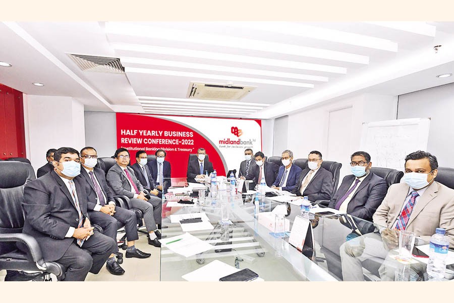 The Half-Yearly Business Review Conference 2022 of the Institutional Banking and Treasury Divisions of Midland Bank Limited was held recently at the bank's Head Office at Gulshan in Dhaka. Ahsan-uz Zaman, Managing Director and CEO of the bank, inaugurated the conference as chief guest. Md. Zahid Hossain, Deputy Managing Director of the bank, was present as special guest and moderated the conference.