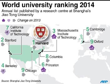 Harvard remained as the highest seat of learning in the globe followed by Stanford University in the annual list of world’s top 10 universities, published on Friday by a research centre of Jiao Tong University, one of the best universityies of the planet, in Shanghai, China, according to AFP.