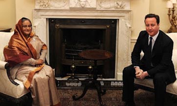 Prime Minister Sheikh Hasina, on a three-day official visit to the United Kingdom, on Tuesday held bilateral talks with her British counterpart David Cameron. At the meeting, the two leaders discussed issues relating to bilateral and multilateral interests. Sheikh Hasina, who is leading a 20-member Bangladesh delegation to the UK, arrived at the Downing Street in the morning (GMT). Cameron received her at the 10 Downing Street. The Bangladesh premier arrived in London on Monday at the invitation of the British Prime Minister to attend the first-ever Girl Summit, according to a news agency.