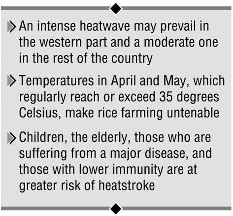 The unprecedented heatwave sweeping over the Indian subcontinent is raising temperatures in Bangladesh as well, leading to public health problems and putting agriculture at risk, reports bdnews24.com.