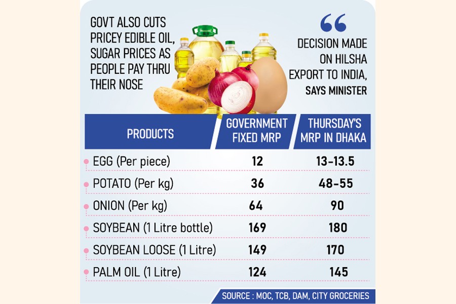 High egg, potato and onion prices have been pegged down while pricey edible oil and sugar retail rates cut by latest government orders as people pay through their nose amid market waywardness.