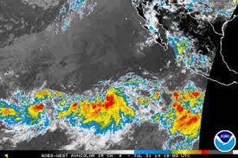 Hurricane Iselle, tearing across the Pacific southeast of Hawaii, picked up strength overnight, the US National Hurricane Center said Sunday. Iselle was located some 1,615 miles (2,600 kilometers) east of Hilo, Hawaii moving west towards the islands at 10 miles (17 kilometers) per hour, the NHC said in its 0300 GMT bulletin. ‘This motion is expected to continue for the next couple of days,’ the NHC said. The storm has maximum sustained winds of 110 miles (175 kilometers) per hour, making it a Category Two hurricane on the five scale Saffir-Simpson scale. The NHC's long-term forecasts has Iselle heading directly towards the Hawaii islands and reaching their Thursday or Friday, though it is unclear how strong it will be at that time. Iselle ‘could strengthen a little bit more in the next day or so,’ the NHC said, ‘but weakening is forecast to begin by Monday.’ Currently the Center has issued no coastal watches or warnings, according to AFP.