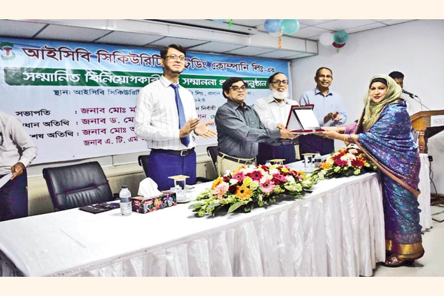 ICB Asset Management Company Limited was awarded as the highest trader of ICB Securities Trading Company Limited for financial years of 2020-21 and 2021-22. Chief Executive Officer of IAMCL Mahmuda Akhter received the certificate of appreciation from ICB Chairman Dr Md Kismatul Ahsan at the award giving ceremony in Dhaka recently. ICB Managing Director Md Abul Hossain and Deputy Managing Director Abu Taher Mohammad Ahmedur Rahman were also present.