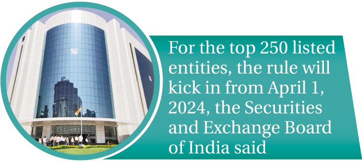 Further, for the top 250 listed entities, the rule will kick in from April 1, 2024, the Securities and Exchange Board of India (Sebi) said in a notification.
