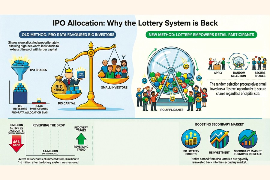 The BSEC brought back the lottery system even though the taskforce assigned to suggest capital market reforms made no recommendation on IPO share distribution.