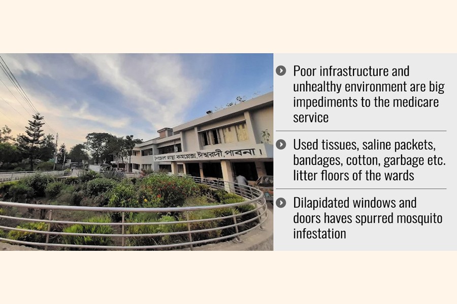 PABNA, Jan 18: Proper healthcare service is being hampered at the Ishwardi Upazila Health Complex in the district's Ishwardi upazila due to poor infrastructure and unhealthy environment stemming from lack of supervision and renovation by the authorities.