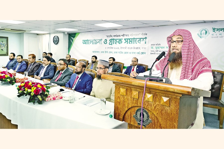 Dhaka East, Dhaka South and Dhaka North Zones of Islami Bank Bangladesh PLC organised a discussion on 'Compliance of Shari'ah in Banking Operations' for its clients at the Islami Bank Tower on Tuesday. Dr. Muhammad Saifullah, member of the ShariÕah Supervisory Committee, spoke as the chief guest. Muhammad Qaisar Ali, Additional Managing Director, and Md Nayer Azam, Deputy Managing Director of the bank, were present as special guests while Md. Aminur Rahman, head of Dhaka East Zone, presided over the event.