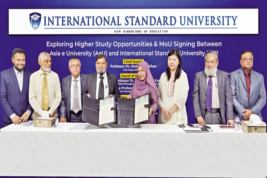 International Standard University (ISU) and Asia e University (AeU) Malaysia recently signed a Memorandum of Understanding (MoU) at the ISU campus, marking a significant step toward expanding higher education opportunities, enhancing academic collaboration, and promoting joint research initiatives, according to a press release.