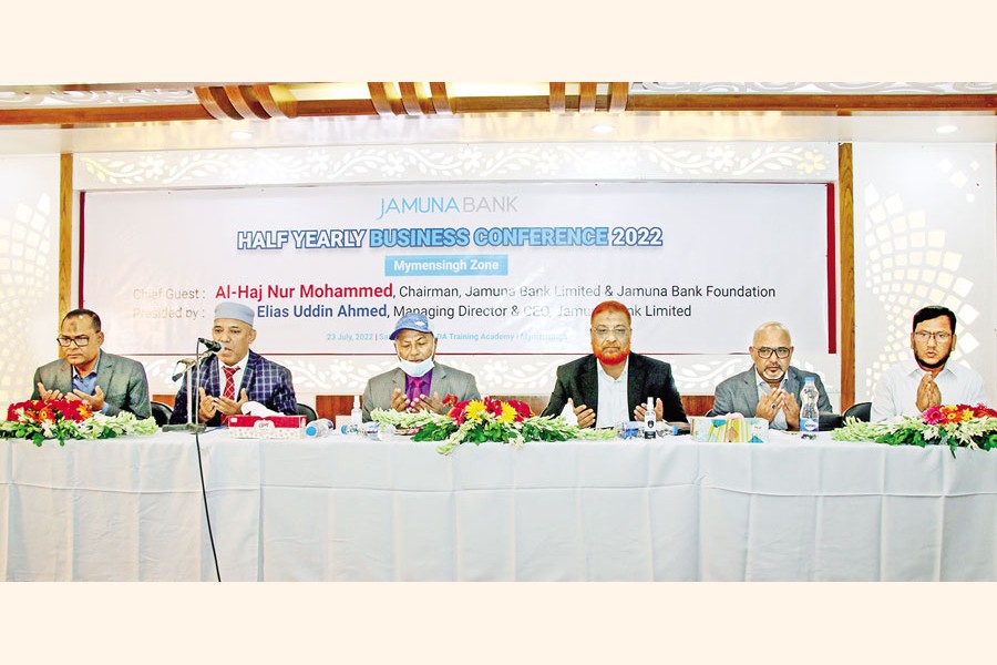 Jamuna Bank Limited organized Mymensingh Zone Half Yearly Business Conference 2022 recently. Chairman of Jamuna Bank Ltd and Jamuna Bank Foundation, Al-Haj Nur Mohammed was present as the chief guest in the conference. Managing Director and CEO of the Bank Mirza Elias Uddin Ahmed presided over the Conference.
